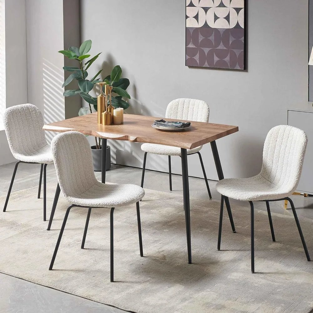 Modern 5-piece dining set with a sleek rectangular table and four matching chairs—perfect for kitchens, dining rooms, or small spaces. Built with durable materials and comfortable seating, it’s easy to clean, simple to assemble, and the chairs tuck neatly under the table for a clutter-free look.